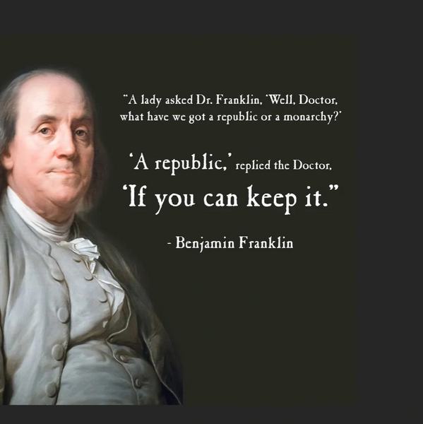 When Benjamin Franklin offered that famous warning, he was reminding future generations that a republic survives only through the character and vigilance of its citizens. Keeping our democracy is not a passive inheritance — it is an active responsibility. Each of us has a role to play in sustaining the institutions, norms, and civic virtues that make self‑government possible.